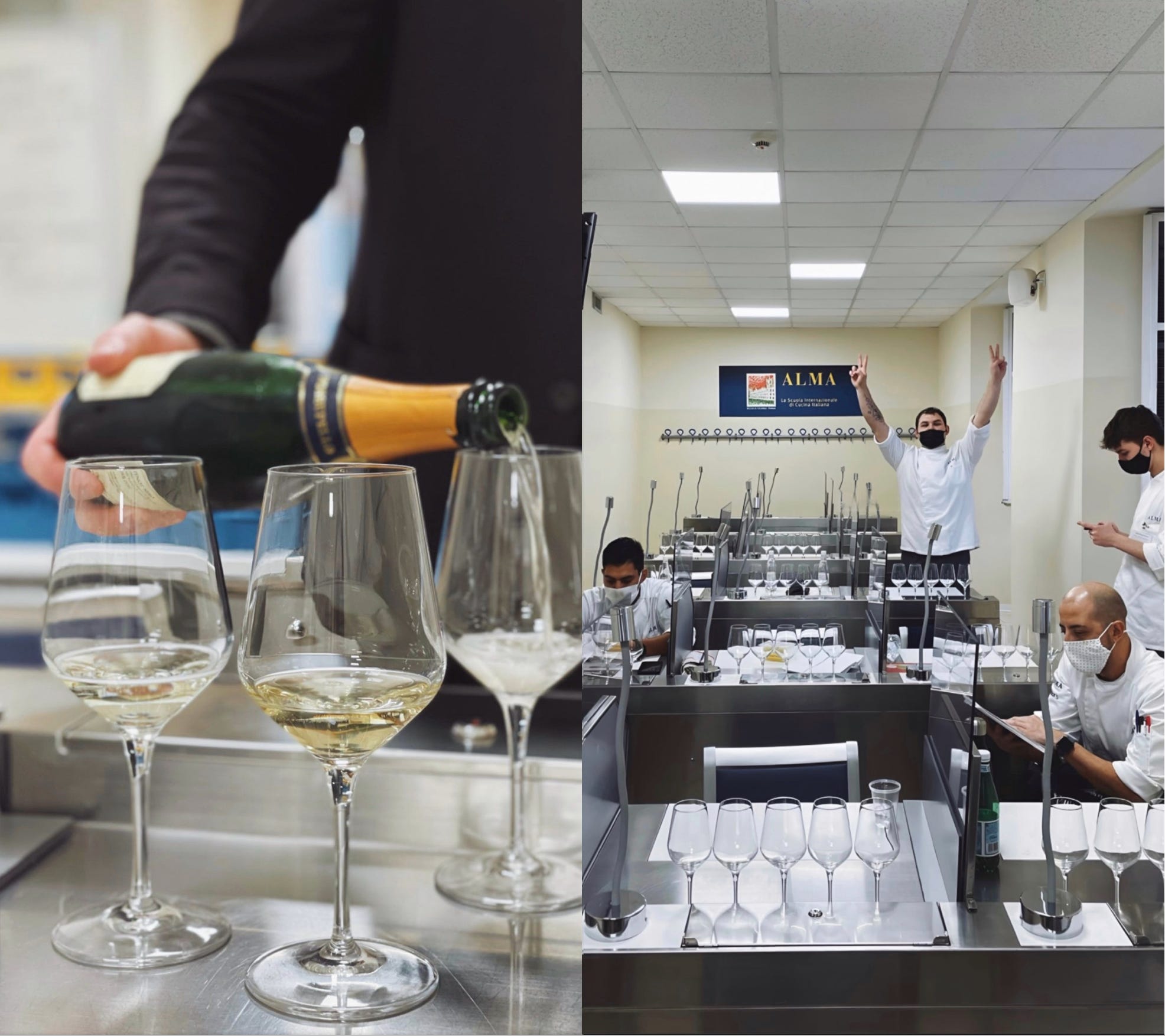The tasting room on the second floor was always set up with intent: five-or-so bottles on the front desk, some on ice, others at room temp. Before we began, Prof. Pessina would unfurl a retractable map of wine regions and call a student forward to open the first bottle, pour us each a glass, pass them around.