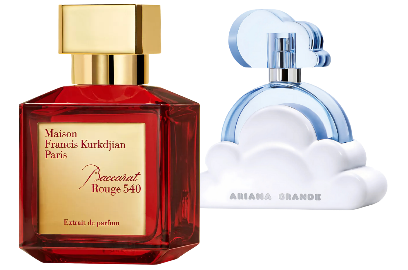 Consider Francis Kurkdjian’s Baccarat Rouge 540 and Ariana Grande’s Cloud. BR540 retails for roughly $300 for 70ml. Cloud at around $65 for 100ml.